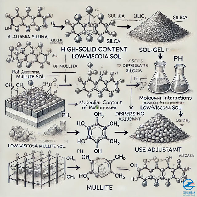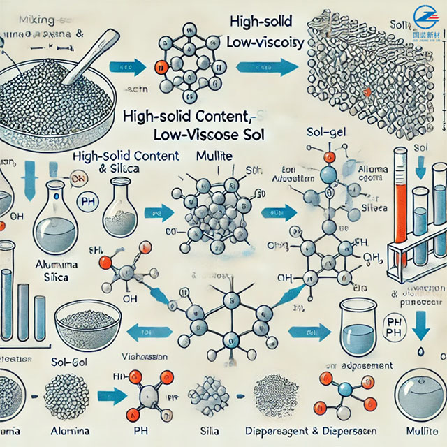 莫来石以及铝溶胶作为一种以纳米形式分散于溶液中的陶瓷前驱体材料,它在高温处理后能够转变为结构致密的莫来石、α-Al₂O₃陶瓷。高固含量溶胶能够提供最终材料更高的致密度,更低的孔隙率,而低粘度则确保其在应用中具备优异的流动性和可操作性。